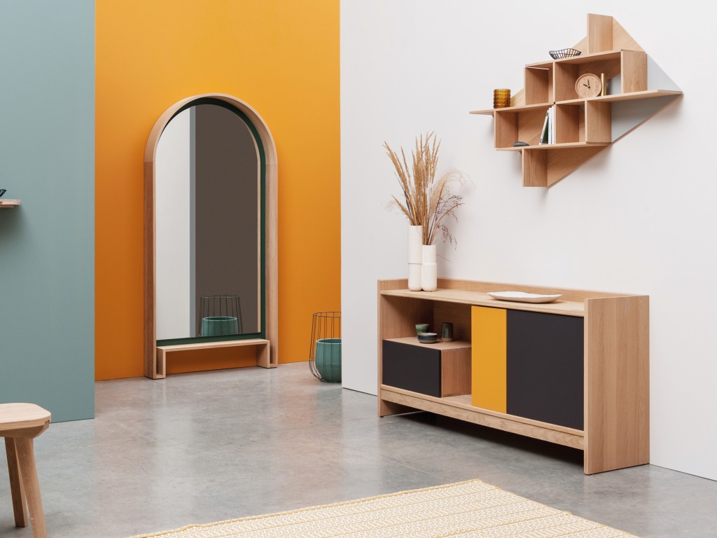 Telle une porte ouverte sur l’extérieur, le grand miroir sur pied BIPEDE de Drugeot Manufacture est un colosse de 2 mètres de haut qui agrandit tous les espaces. Sa large surface vitrée réfléchit la lumière naturelle et éclaire subtilement l’ensemble de la pièce. Son encadrement cintré rappelle les arcades des belles portes en bois voutées. Ce miroir original et spectaculaire habillera avec panache une entrée, un couloir, un dressing, une chambre et même le salon.