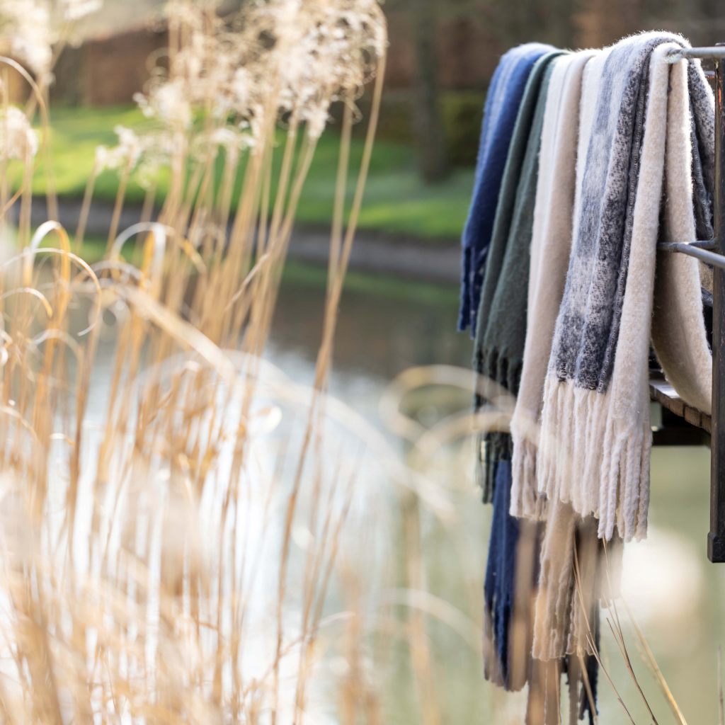 Ce plaid tout doux est composé de 100% Polyester recyclé. Suivant les teintes, ses rayures sont horizontales ou verticales.